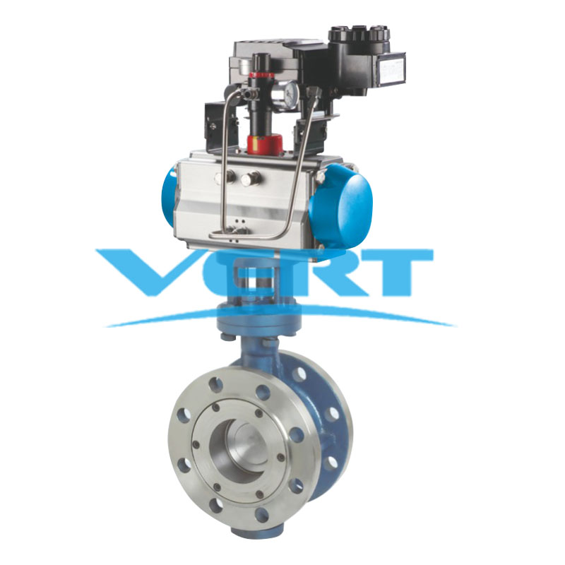 The pneumatic tri-eccentric hard seal butterfly valve is based on the two-eccentric hard seal butterfly valve to generate an angle(the sealing surface is an inclined cone) , thus forming the tri-eccentric hard seal butterfly valve.The structure has no mechanical wear and scratch in the process of opening and closing, small closing torque, good cutting performance and long service life, as well as has two functions of adjustment and cutting. This series of products are widely used in the automatic control system of petroleum, chemical industry, electric power, metallurgy, environmental protection, light textile, papermaking and other industrial sectors. In addition, it's suitable for liquid, gas, coal gas, natural gas and steam to cut of for regulate flowcontrol.